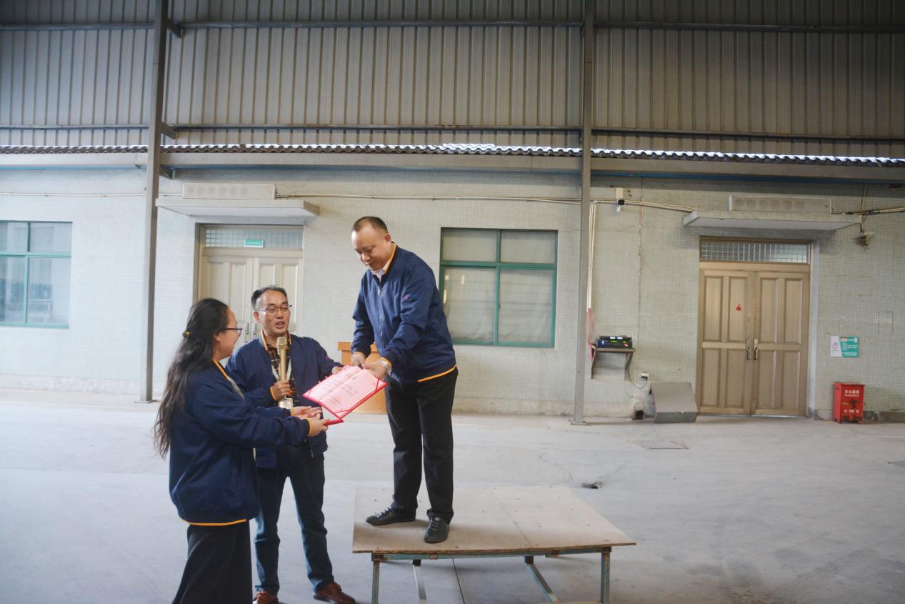 2022年10月24日,趁著周一早會時間,我們對模具部及五金模組頒發(fā)了獎狀及獎金,激勵各位佳人以模具部為榜樣,在自己精通熟悉的領(lǐng)域里,主動挑起重擔,精進技藝,簡化流程,節(jié)約公司成本,開創(chuàng)屬于我們自己自創(chuàng)自主的品牌產(chǎn)品。只要有利公司發(fā)展前景,公司一定給予相應嘉獎。